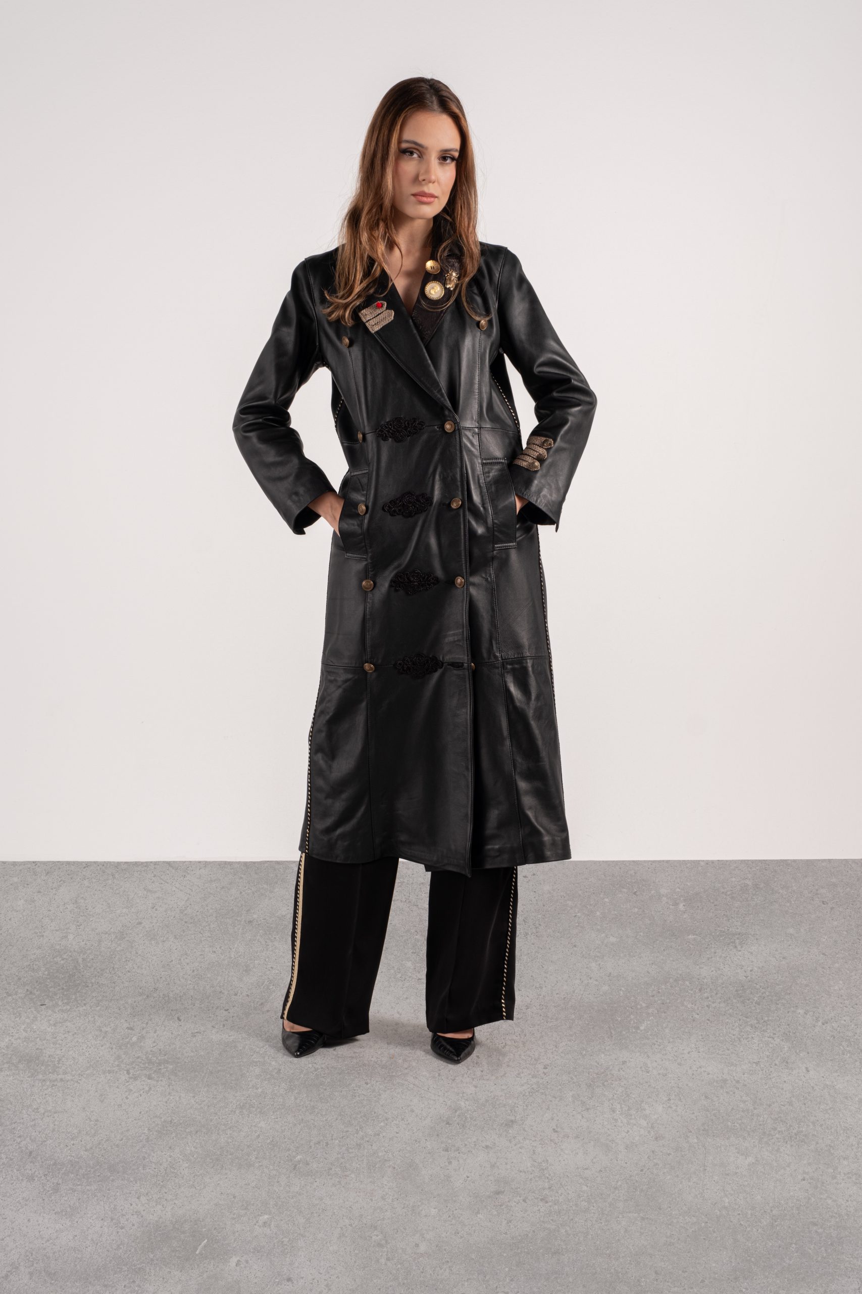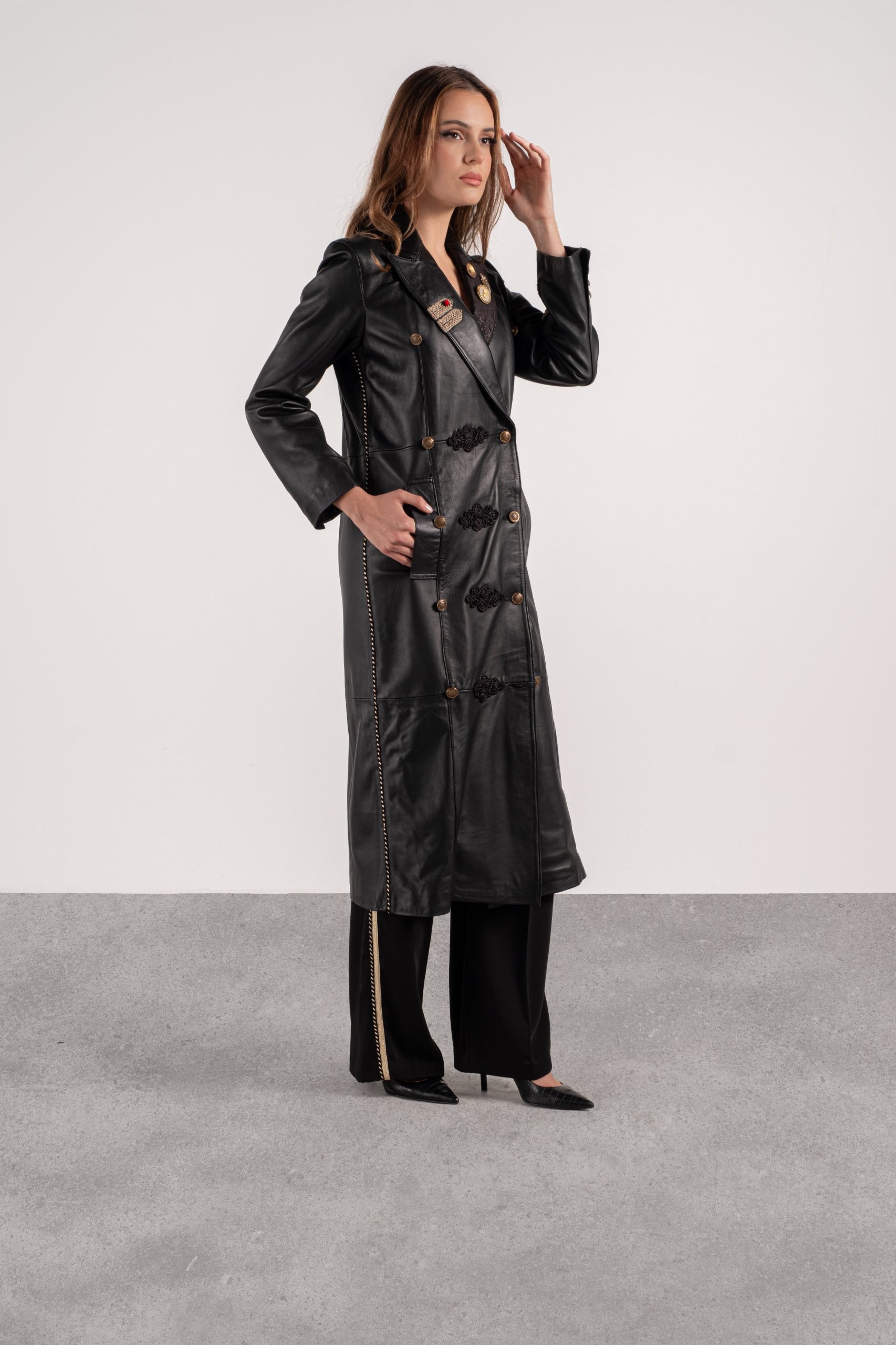 MANTEAU EN CUIR VÉRITABLE DROIT CROISÉ